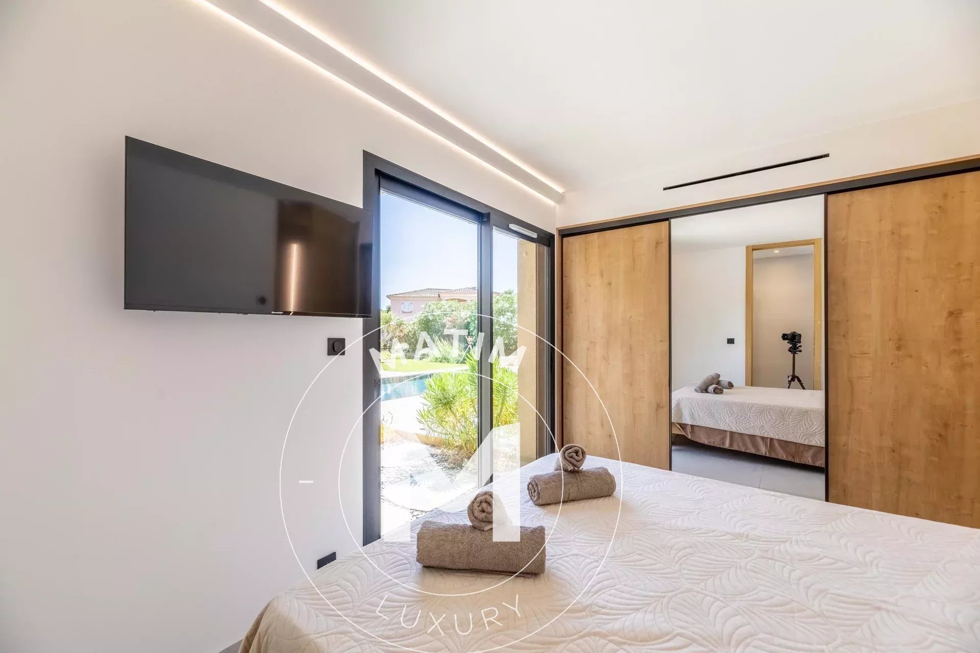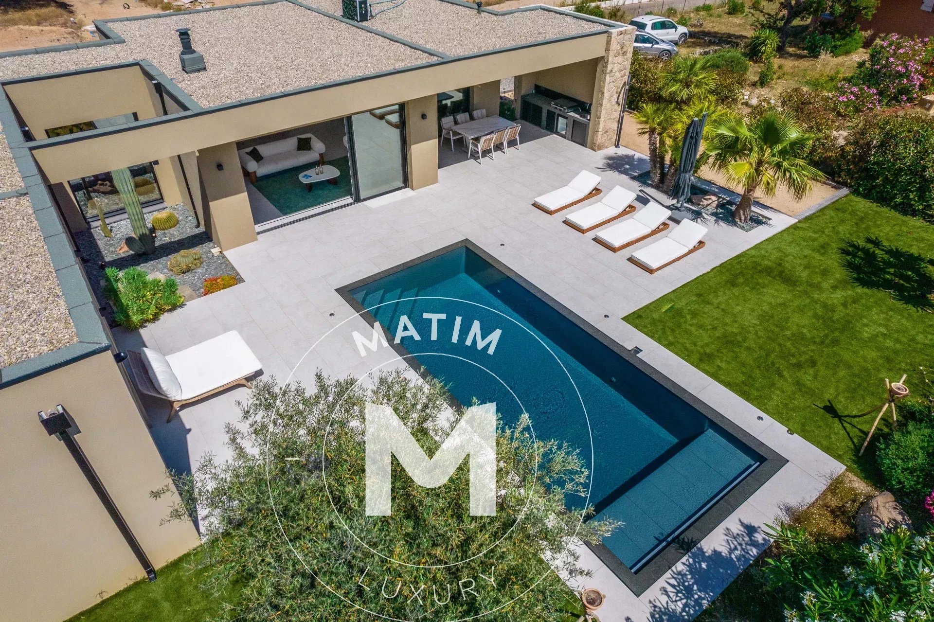 L'agence vous présente, au cœur de la commune prisée de Lecci, à seulement quelques minutes des plages de Saint-Cyprien et de Cala Rossa, cette villa contemporaine offrant un cadre de vie serein, raffiné et fonctionnel.