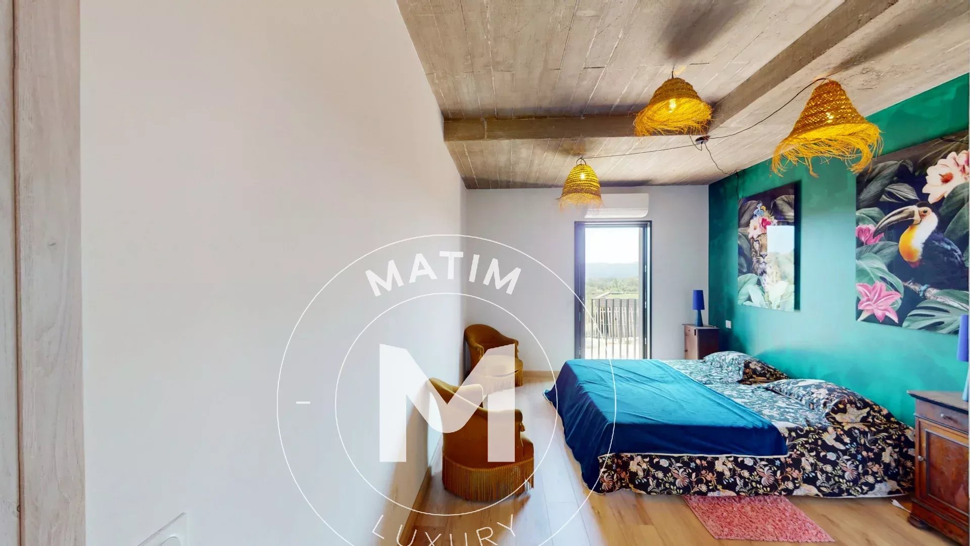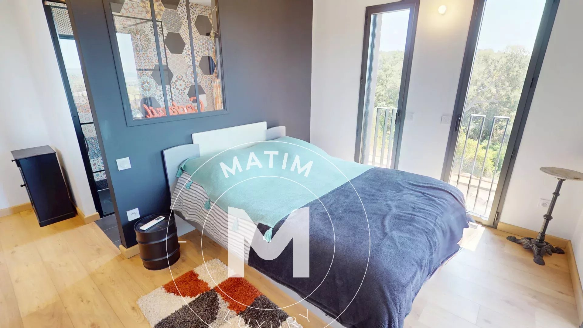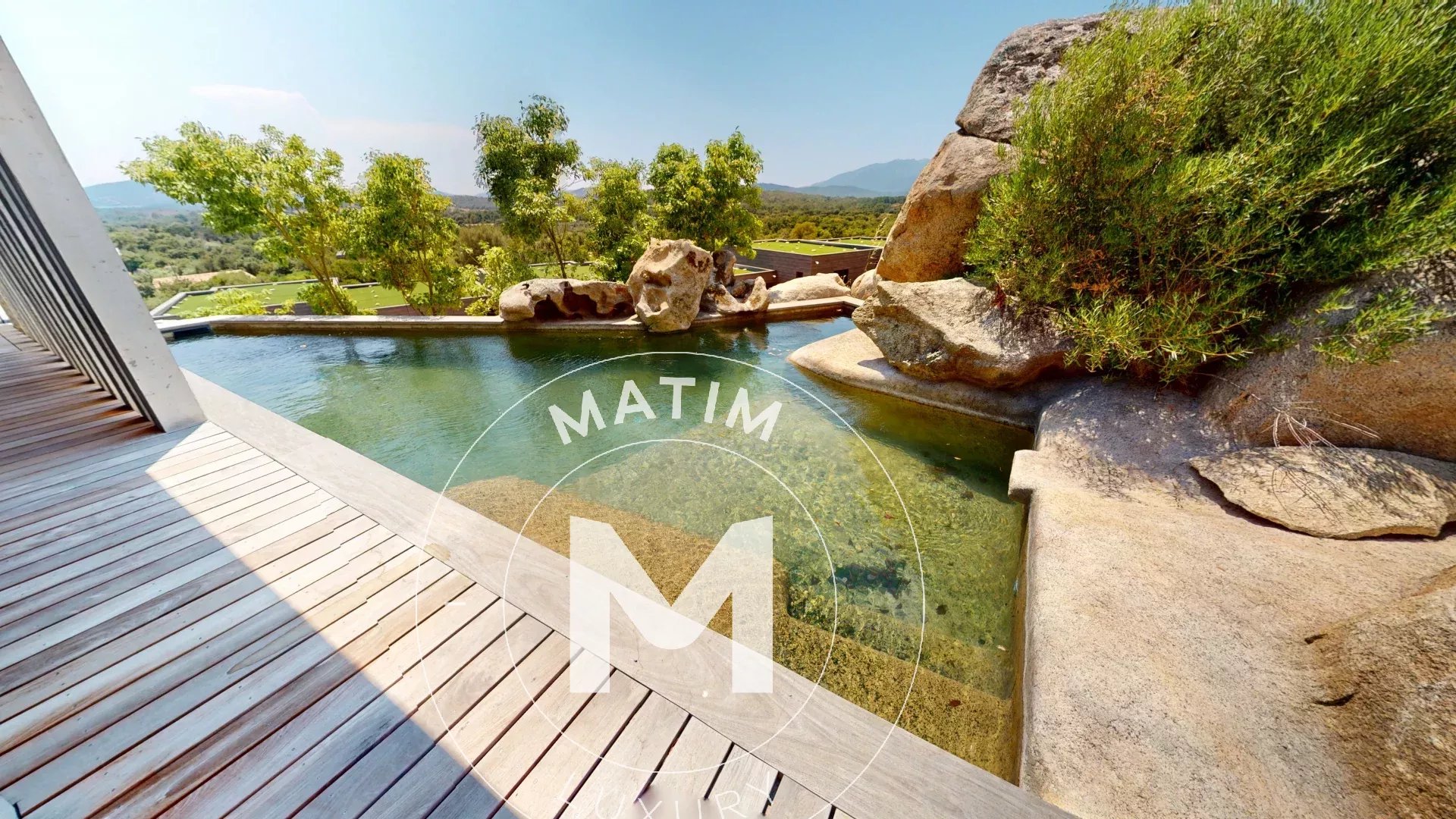 L'agence vous présente, idéalement située à proximité immédiate des plages de Saint-Cyprien et de Cala Rossa, cette villa d'architecte au caractère affirmé qui se distingue par son architecture audacieuse et son positionnement rare.